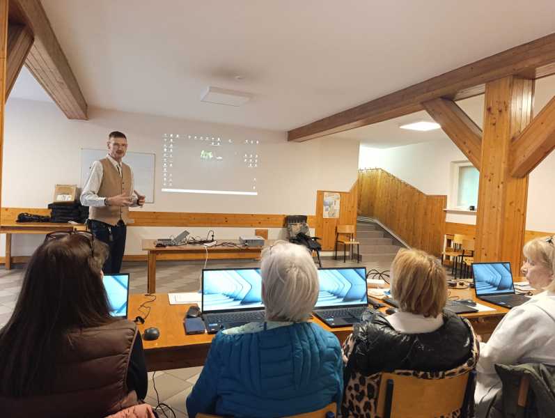 wrażeń dzień. Już od wczesnych godzin porannych rozpoczęły się pierwsze zajęcia komputerowe dla grupy 1 w ramach bezpłatnego projektu „Klikam, więc jestem”, skierowanego do osób po 60. roku życia. Projekt realizowany jest przez Fundację Aktywizacji Społecznej BestWay, a zajęcia z uczestnikami prowadzi Pan Krystian Zachciał.