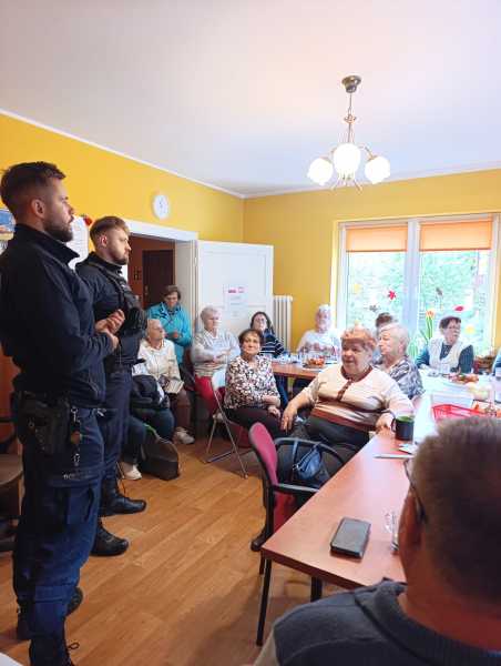 Na zakończenie dnia Seniorów odwiedzili Policjanci dzielnicowi – Krzysztof Polzin oraz Remigiusz Pauszek. Podczas spotkania przypomnieli oni o zasadach bezpieczeństwa, apelując o ostrożność przy odbieraniu telefonów od nieznanych numerów oraz rozwagę w okresie zbliżających się uroczystości Wszystkich Świętych.