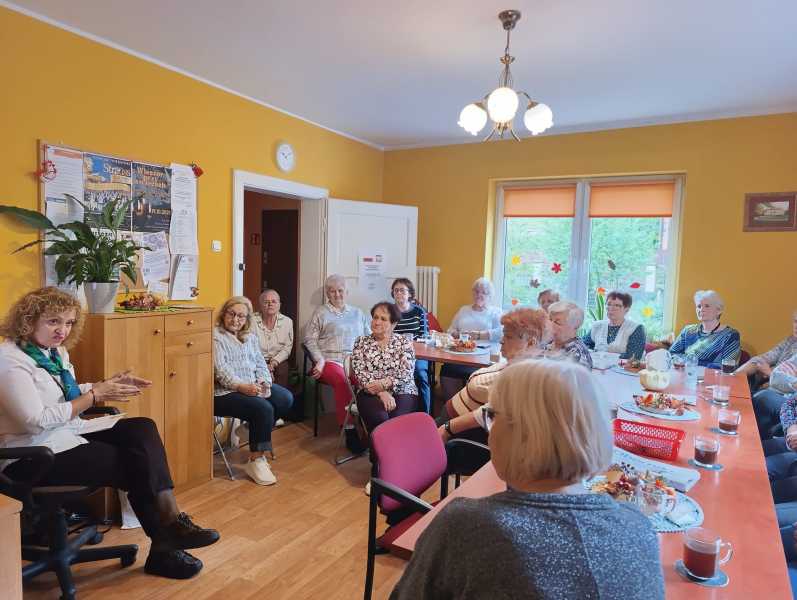 Kolejnym punktem dnia było spotkanie z Panią Jolantą Kamińską z Zakładu Ubezpieczeń Społecznych, która przeprowadziła interesujące szkolenie dotyczące świadczeń przysługujących Seniorom – w tym rent wdowich oraz innych form wsparcia oferowanych przez ZUS. Każdy uczestnik otrzymał również drobne upominki, m.in. torby z logo ZUS, zakładki oraz broszury informacyjne.