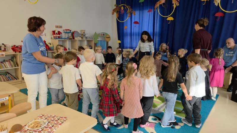 W środę, 5 listopada, seniorzy z zespołu muzycznego Senior+ odwiedzili grupę „Kotki” z Przedszkola nr 1 „Bajeczka”. Było to ich pierwsze spotkanie z czteroletnimi przedszkolakami, które – jak podkreślają – z pewnością nie będzie ostatnie.