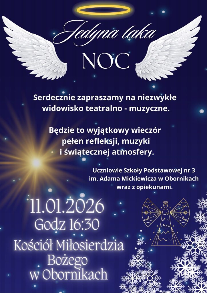 Zapraszamy na poruszające widowisko muzyczne opowiadające historię Magdy – młodej kobiety, która w niezwykłą noc wyrusza w podróż pełną wspomnień, emocji i ważnych pytań o sens życia. To opowieść o miłości, przebaczeniu i prawdziwym znaczeniu Świąt Bożego Narodzenia, przepełniona piękną muzyką, wzruszeniami i dziecięcą autentycznością. Koncert, który niesie nadzieję, ciepło i skłania do refleksji – dla widzów w każdym wieku.